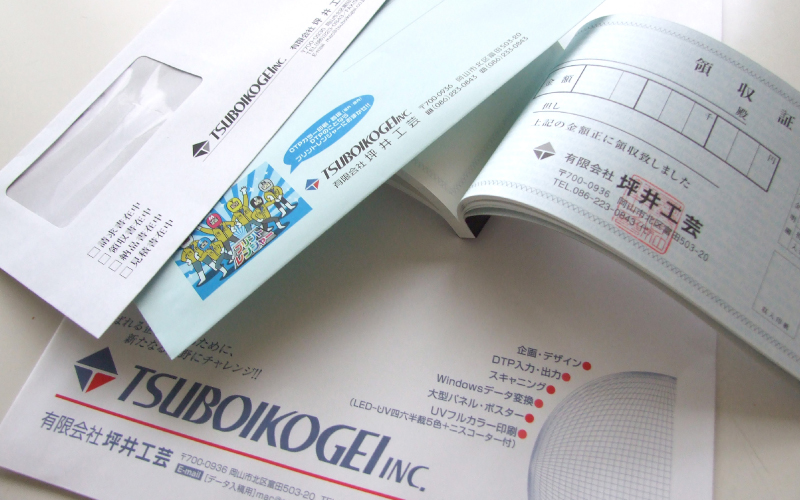 封筒は、単色のシンプルな封筒もあれば、カラー印刷された特殊な形状をしたものなど様々な種類があります。伝票は、「請求書」「納品書」「領収証」など会社の重要書類を記録、保存する大切なツールです。 用途にあった複写方式や仕様があります。 |